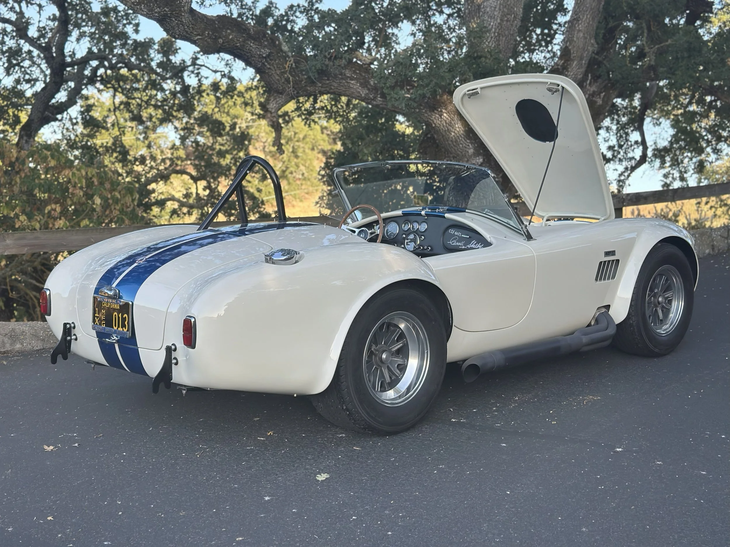 Shelby Cobra CSX4051 captures the essence of the legendary 427 for a unique twist on the original. Built by HRE Motorcars and powered by a custom-built NASCAR legend Ernie Elliott engine. In beautiful Wimbeldon White with Guardsman Blue Stripes, this 427 is a looker!